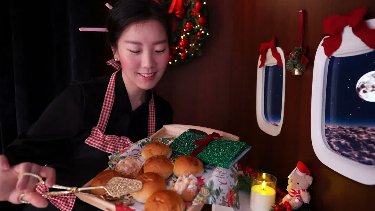 [Rang ASMR] 温馨圣诞夜间飞行 空姐角色扮演 餐食礼物与护肤放松助眠